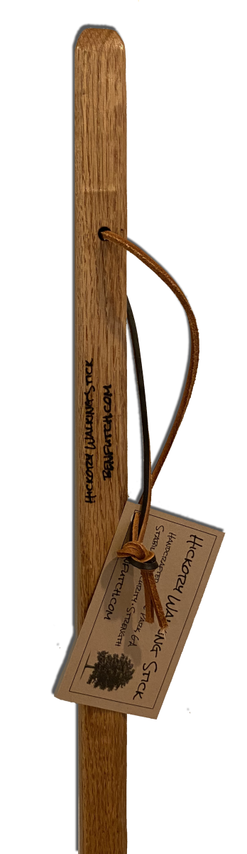 The Hickory Walking Stick is handcrafted in Lake Park, Georgia out of rustic solid hickory wood. It provides stability, security and strength for all that utilize it through durable craftsmanship. A leather wrist strap provides the ability to maintain a secure grip, along with a rubber tip for traction. Proudly manufactured in the USA.